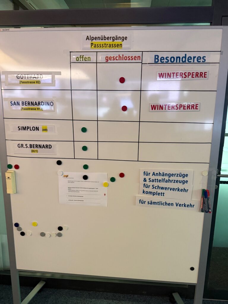 Begrüsst wurde die Gruppe von Philipp Buck, stellvertretender Leiter des VMZ. In einer spannenden Präsentation stellte er die Kernaufgaben des VMZ vor. Dazu gehören insbesondere die Verkehrsinformation, die Verkehrsleitung, die Verkehrslenkung sowie die Verkehrssteuerung. Anschaulich erklärte er, wie diese Bereiche ineinandergreifen und täglich dazu beitragen, den Verkehr auf den Nationalstrassen sicher und effizient zu steuern. Zudem wurde ein Einblick in die Kommunikation und Zusammenarbeit mit den verschiedenen Schnittstellen im In- und Ausland gegeben.