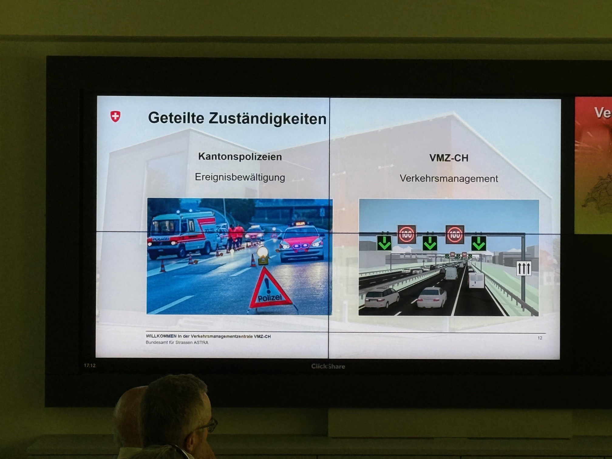 Der efficiency club organisiert einen exklusiven Besuch der Verkehrsmanagementzentrale (VMZ) in Emmenbrücke des Bundesamts für Strassen (ASTRA). Die VMZ überwacht und steuert den Verkehr auf dem gesamten Schweizer Nationalstrassennetz rund um die Uhr in Zusammenarbeit mit den Kantonspolizeien. Dabei analysieren Verkehrsmanagerinnen und Verkehrsmanager mittels über 5’000 Kameras die Verkehrslage und setzen bei Staus, Unfällen oder Baustellen gezielte Massnahmen zur Lenkung, Leitung und Information der Verkehrsteilnehmer um – wie Tempo-Anpassungen, Umleitungen oder Sperrungen.